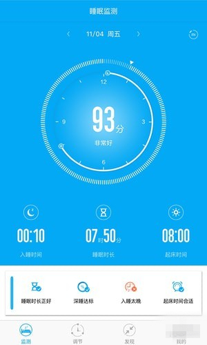 【朋友圈】将您的深度睡民时间分享全朋友圈,排名查看自己的睡眠分数,与好友一同“约睡”,养成健康睡眠的习惯。