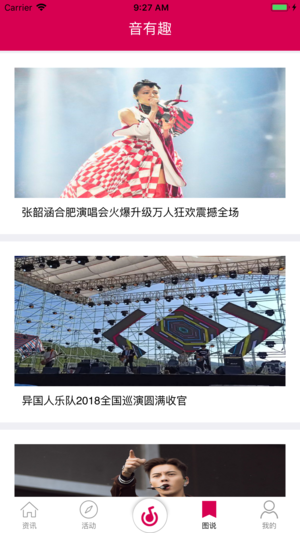 歌手宣传、新曲作品宣传、公益宣传等,汇集原创音乐头条资讯;随时更新演唱会,音乐节周边产品、音乐人发布线上线下应援活动;
