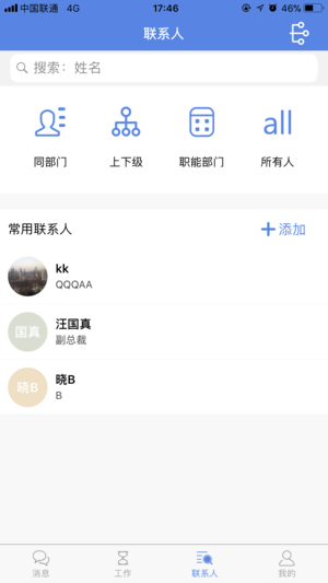 1、组织架构:灵活搭建企业的人员组织架构系统。根据组织中的职能、角色和权限自由分配所需各种应用服务。2、聊天功能:支持单聊,群聊和语音对讲机功能,让沟通更高效。