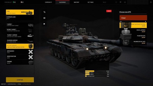接下来是给载具上主动防御,左边选Active Armor直接买最贵的就第一个相当于给你挡6发,在基地维修平台上可以补。下车后按4可以修载具。