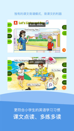 经典功能:练口语、智能点读、趣配音、复读课文、做作业、背单词、学习报告、课前预习、早读、课后巩固、听力、语法、阅读专题训练、活动手册听力、丢分题;小学英语全方位攻破。