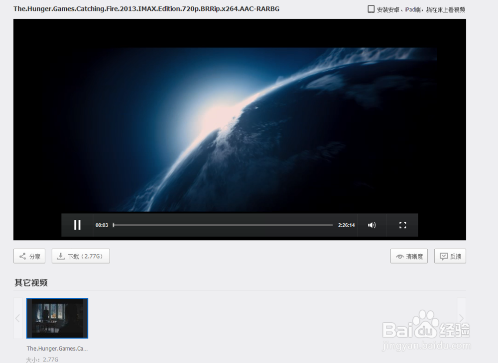 1,在清晰度的地方选择高清,那么就会要求你安装一个百度播放器,一边下载一边观看高清大片。
