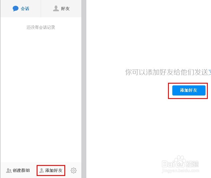 如果在没有好友的情况下,需要去添加好友,可以点击左侧底部和右侧的“添加好友”按钮。(如下图)