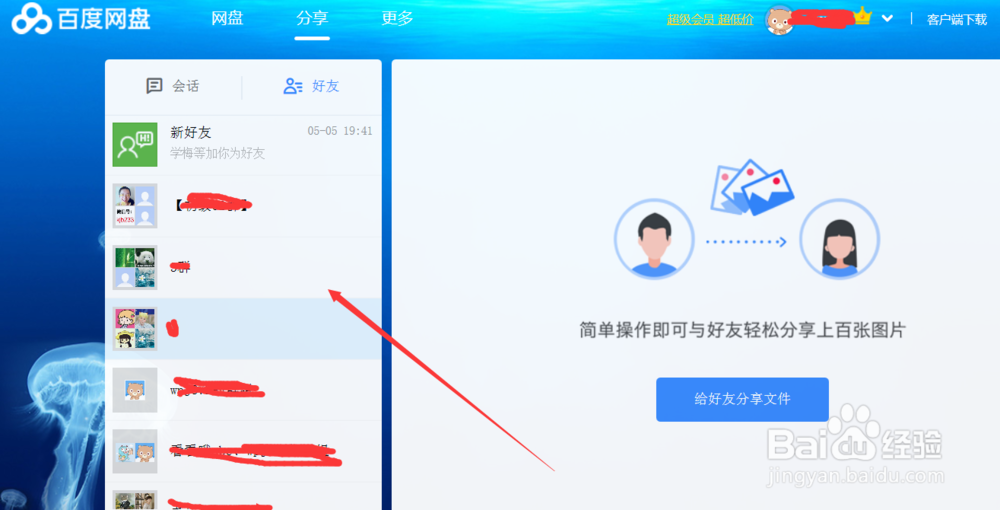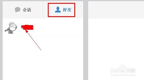 然后点击左侧的好友功能菜单,然后点击需要分享文件的好友。(如下图)
