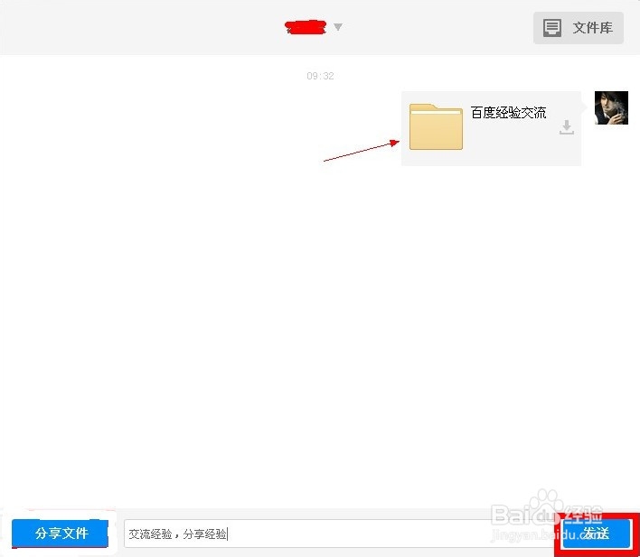 这时候在与好友的会话窗口,就会显示已经跟好友分享的文件,当然也可以在下面的文字输入框中输入交流文字,然后点击发送就可以了。(如下图)