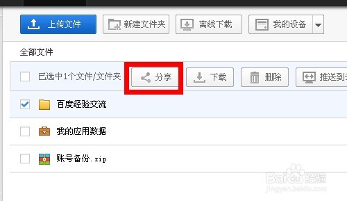 接着在选定需要分享的文件,再点击上面的”分享“按钮。(如下图)
