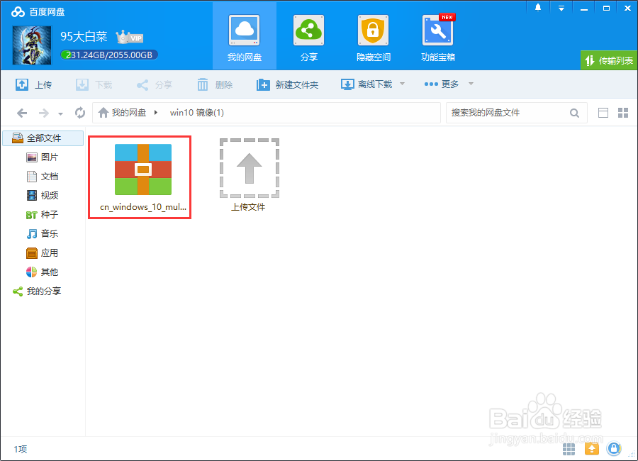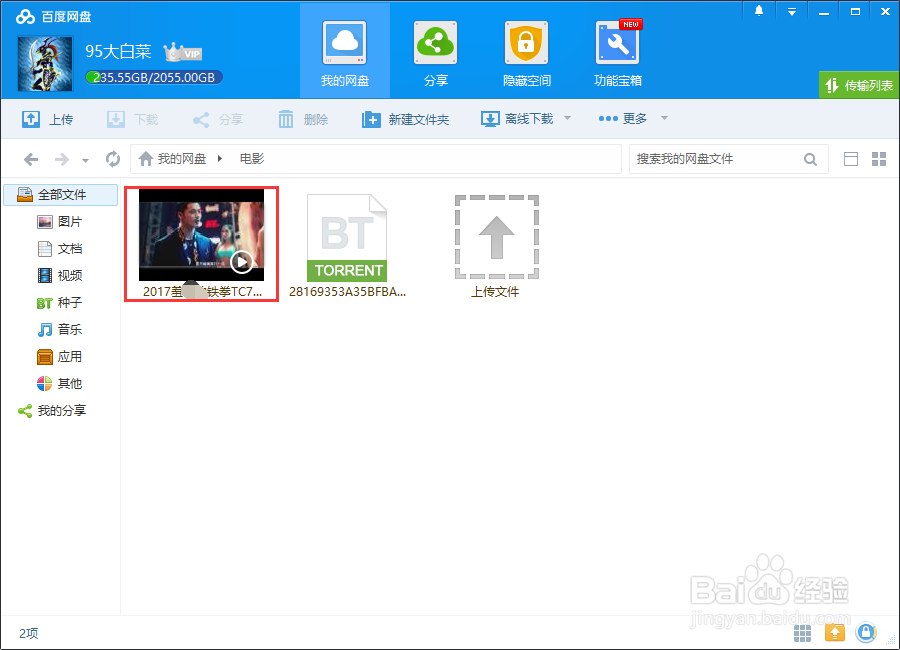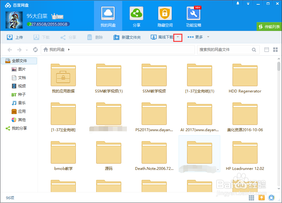 进入后,登入我们的百度网盘,选中你要下载的文件,如图所示;