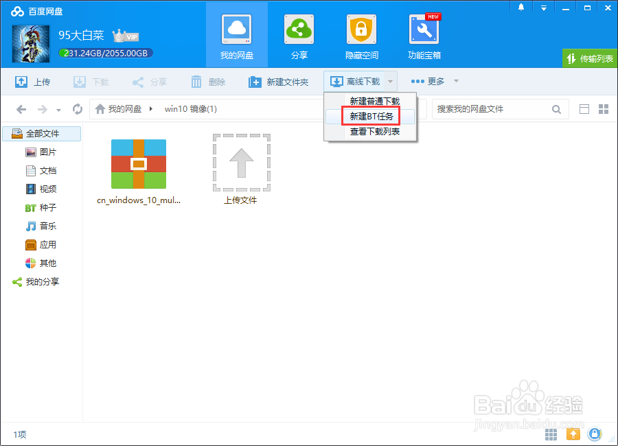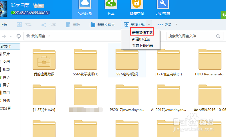 在网盘的主页上找到离线下载的按钮。百度网盘真是良心之作。免费离线下载真是棒!