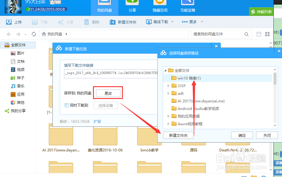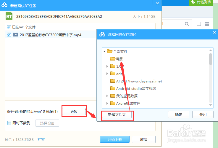 同样的“更改”,然后新建文件夹,这样我们就比较好找了,然后“开始下载”,最后在自己新建的文件下找到我们刚才的文件,再用百度云下载