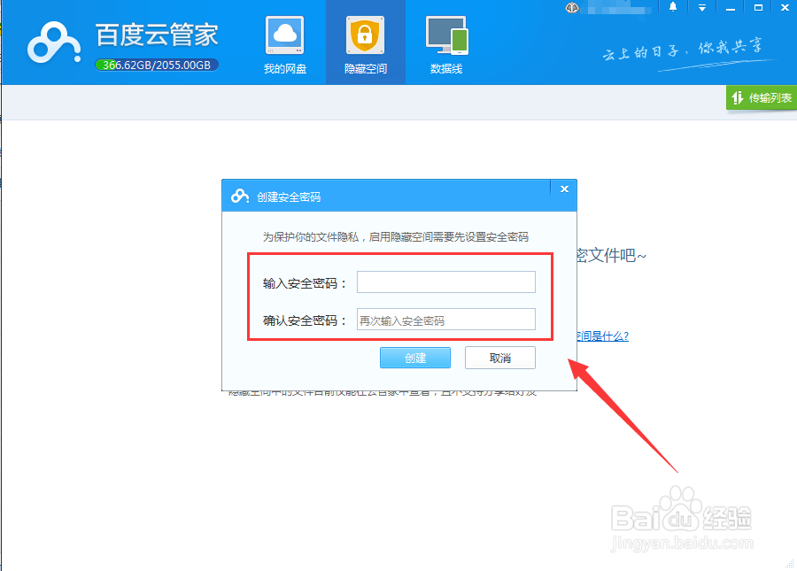 在弹出的窗口输入两次一致的密码,然后单击【创建】。