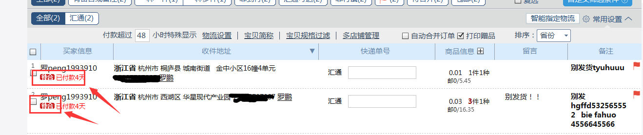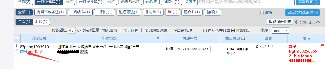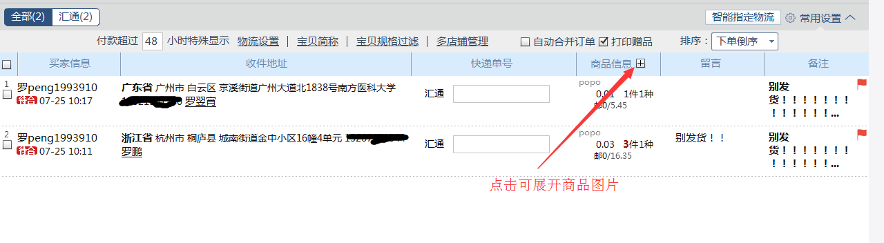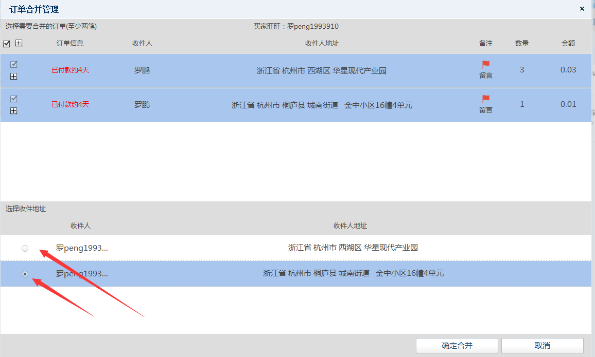 同样道理,没有合并的订单会显示为待合,当我们点击待合时,即可合并订单。
