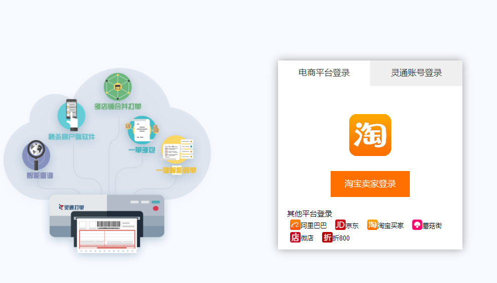非淘宝的电商平台如何登录灵通打单第一步:选择自己的电商平台入口,登录灵通打单