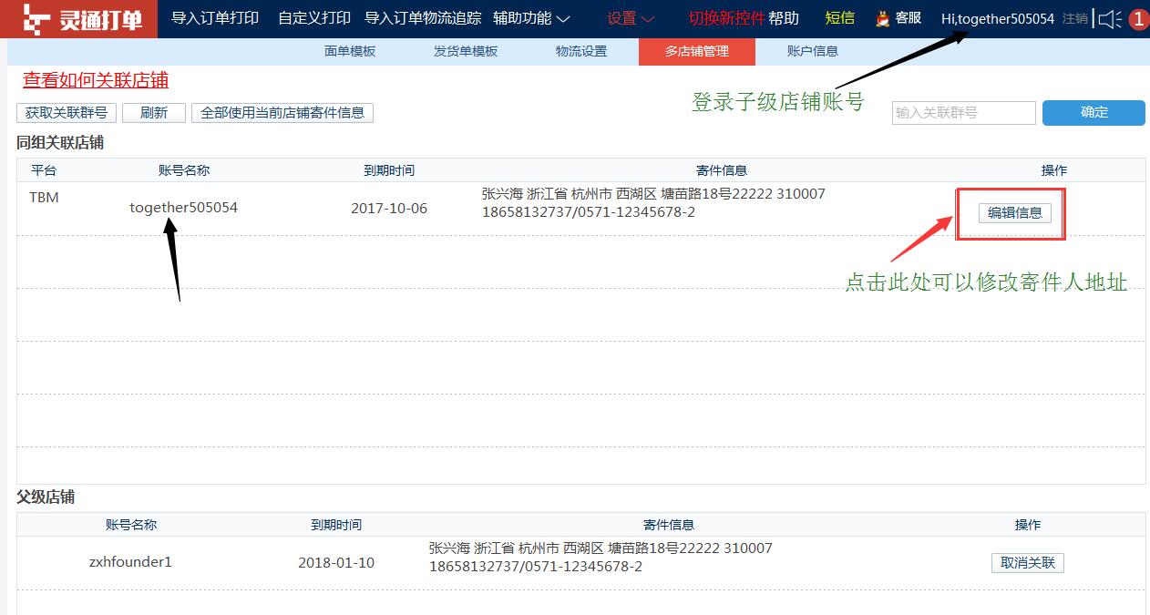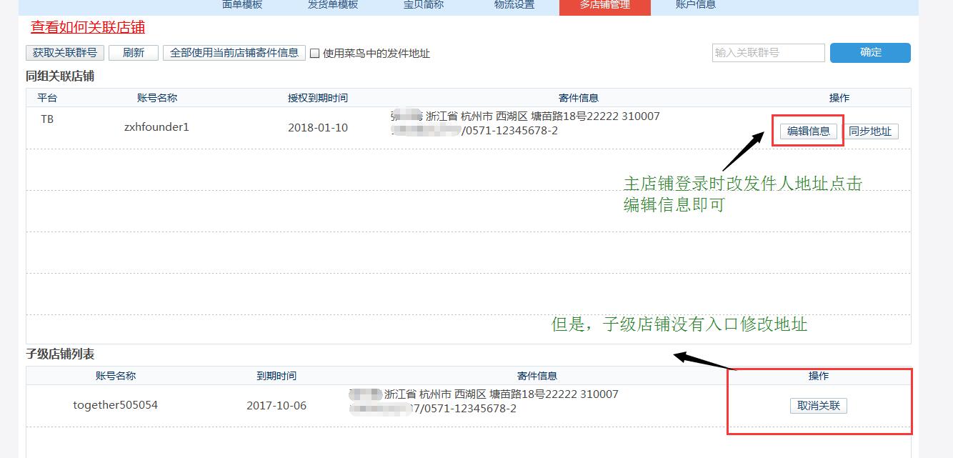 解决办法:此时我们需要登录子店铺账号进入灵通,方可修改地址 如图: