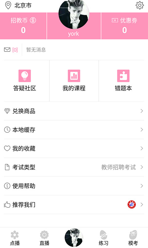 4. 《个人中心》(招教币、我的课程、错题本、兑换商品、我的收藏、使用帮助、推荐我们等等一系列功能);