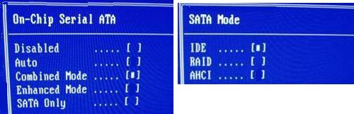 请设置BIOS:硬盘模式设置成AUTO或Combined或Compatible,SATA模式设置AUTO或IDE或ATA(有的电脑必须设置成AHCI),如下图: