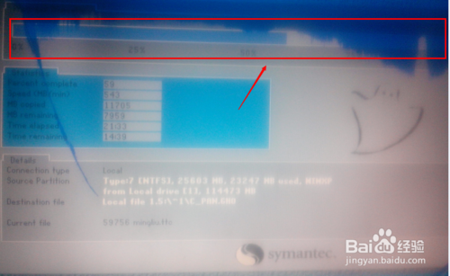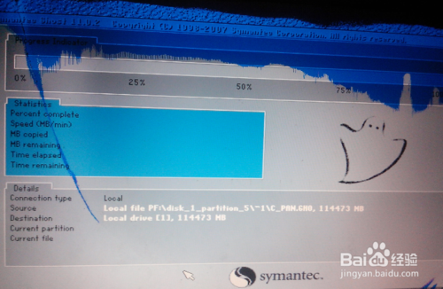 出现GHOST窗口,进度条一点一点的移动,成功在向你招手^_^