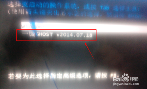 电脑重启过程中,可以通过上下键来选择一键ghost硬盘版恢复系统选项,如下图所示。