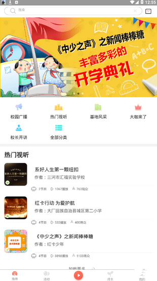 红广少年APP是引领中国少年儿童学习发展的平台,在这里有丰富的精品课程可供学生随时随地的进行查阅学习,丰富的课外活动帮助学生拓展视野,红广少年APP支持用户记录成长的点滴,还可建立班级群,方便同学之间沟通联系。红广计划(智慧建设)app是红领巾广播电视促进计划的展开,帮助更多的红领巾少先队员参与计划在新时代接受最新的思想建设洗礼,做到光复中华民族伟大复兴的少先队员,优质课程学习活动团队建设。