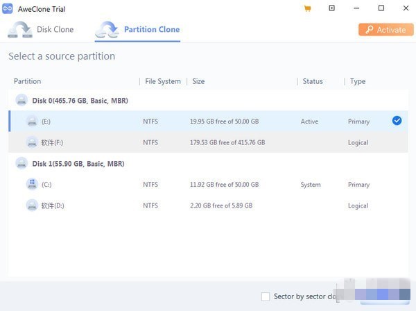 AweClone是一款很不错的磁盘克隆工具,功能十分的强大,它可以帮助你很安全的克隆硬盘或者将硬盘驱动器分区克隆到其他的硬盘驱动器上,有磁盘克隆和分区克隆两种方式。