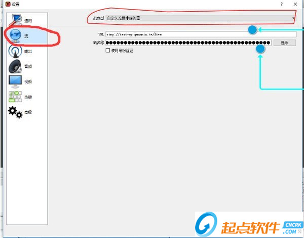 点击上图设置按钮(红框处),再点击“流”,再设置流类型,选择下图选项,最后将个人中心的链接对应着填入推流软件