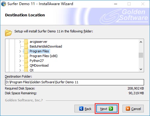 选择好安装目录,然后点击“Next”按钮进入下一步。
