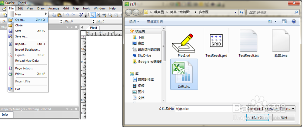 比如说你已经在excel上面建立了符合数据结构的文件,接下来,你就要在surfer上面打开该文件