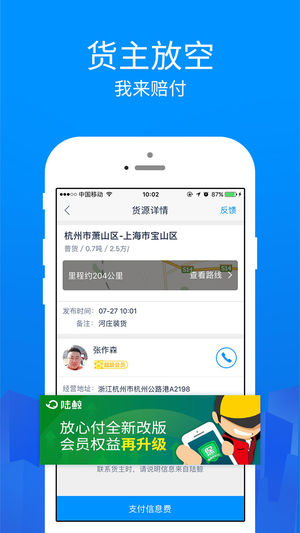 1、精确找货:根据地理位置信息,车型车长等信息快速查找优质货源,一键配货。2、成交担保:提供放心付功能,让广大司机伙伴可以放心交易。