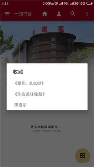 华宇图书馆app更多新功能也会陆续上线,很多已经在开发的路程上了,诸如入馆教育、数字图书馆、漫画与报纸期刊速览、电子书、扫码识书、甚至可以上传自己的作品到华宇图书馆应用