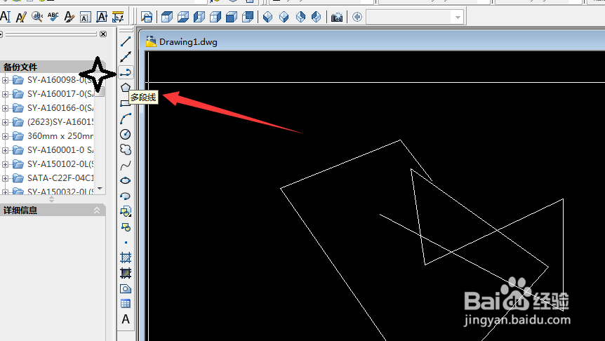 第三个为大家讲解的就是多线段工具。多线段工具,就是说可以创建多条线段操作方法与直线工具类似。但是多线段并不进去,限于直线还可以画出椭圆,圆形,圆弧等。如下图所示。
