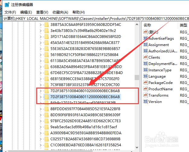 进入到了 installer 文件夹以后,然后我们将该目录下的---7D2F387510064080002000060BECB6AB--文件夹删除掉。如果在里面没有找到该文件夹的话,那么我们就打开尾部为B6AB的文件夹,如果那个文件夹里有cad2010字符,那么我们就删除掉该文件夹即可。