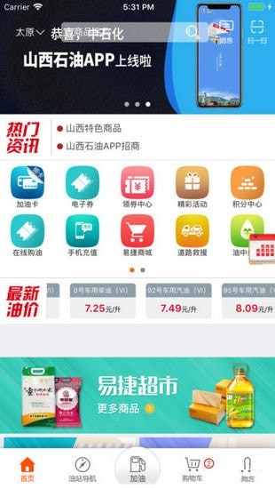 加油山西APP是由中国石化山西石油分公司官方推出的互联网加油与车主服务,为中石化加油卡持卡客户提供加油卡充值、加油交易查询、加油足迹等服务,为提油卡客户提供在线下单购油、订单查询等服务,为广大车主提供油站导航、电子券申领与应用,提供道路救援、活动推荐、在线客服等汽车生活服务,山西石油APP是汽车驾驶员的日常行车好助手。