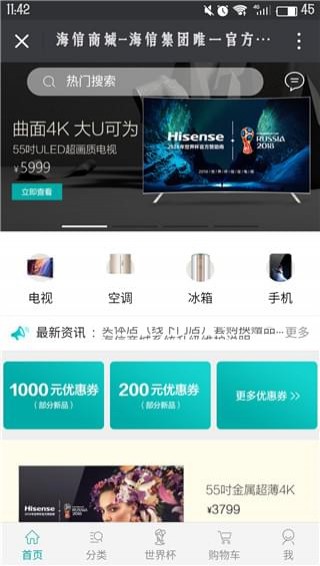 海信商城app,作为全系海信产品网上购物平台,是海信旗下官方商城,为消费者打造全新、高效、可信赖的购物渠道。