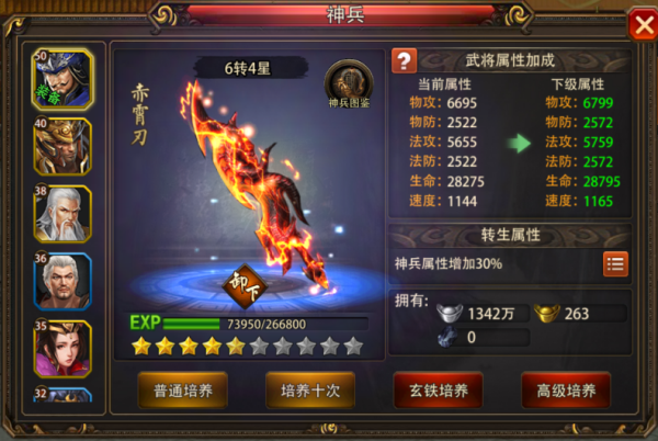 每个神兵都可以镶嵌宝石,玩家可以根据武将属性的特点,以及策略性的需要,随时进行宝石的镶嵌和更换;