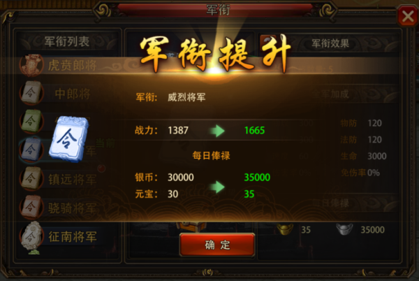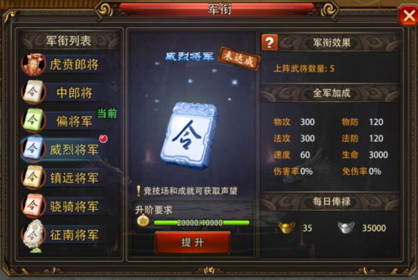 其次,军衔可以对全体武将提供各种属性的加成,增加战斗力评分;