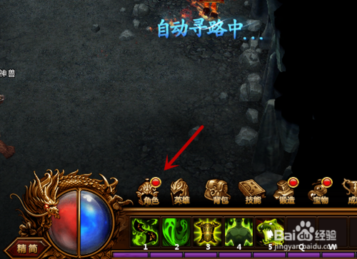 人物界面 C 打开人物属性面板包裹界面 B 打开背包系统