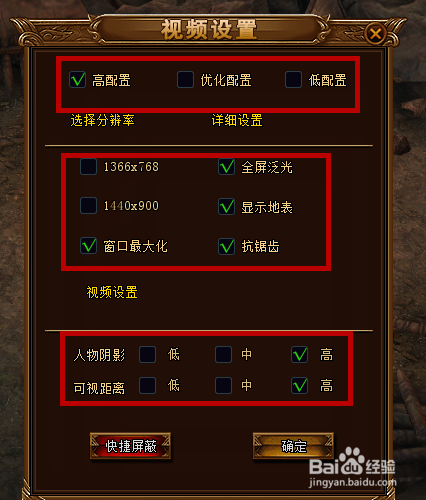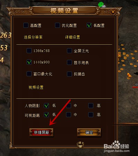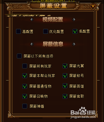 6.之后会打开如图的窗口,我们最好将屏蔽项目中全部勾选,这样画面的多余效果就会消失,也就不会卡顿卡,如图所示。