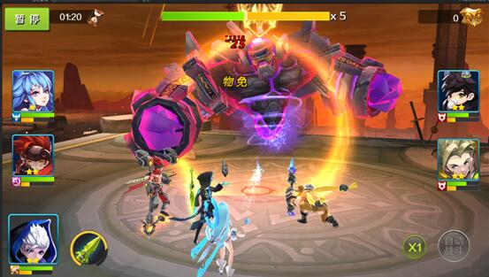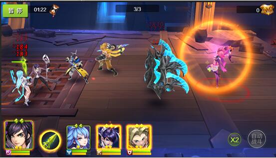 战斗攻略:由于大部分Boss的普通攻击都是范围性的,可以先上阵5人,看看Boss普攻会攻击除肉盾以外的哪个英雄,然后下阵这个英雄,然后Boss普通攻击就只打前排1人了,这个方法可以很好地拿到3星通关。战斗时要有1~2个能打断的英雄,在Boss放技能的时候打断,这样后排也可以很安全了。