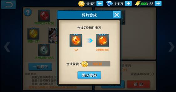 游戏中每两颗低级宝石可合成一颗高级宝石,并且合成费用只需少量金币。封神台每天产出的大量宝石,助你早日佩戴顶级宝石。但是注意不同等级宝石镶嵌是有等级需求的,可别盲目合成高级宝石,游戏中可没有宝石降级功能哦。