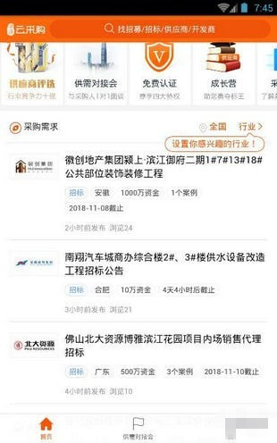 天天采购网手机客户端是一款非常不错的招标信息查询服务应用软件。每日更新信息近万条,可以分城市和行业浏览、输入关键字查询,免费发布采购招标,在线询价,在线招投标。多个行业的企业大全,企业资质信息查询。专门为招标与采购市场开发的手机客户端,其强大的功能包括招标公告、中标公告、采购信息、项目信息以及研究报告等等。