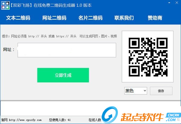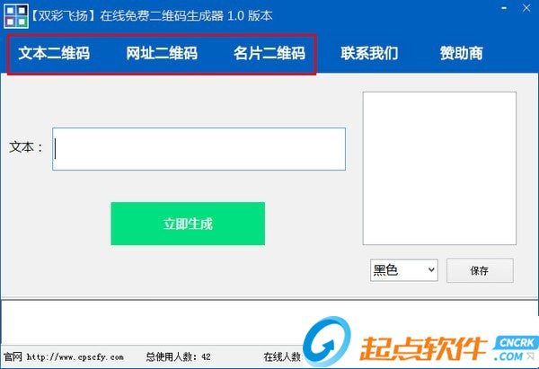 双彩飞扬免费二维码生成器是一款绿色免费的二维码生成器。该软件界面简洁友好,操作简单。通过双彩飞扬免费二维码生成器免费版用户就能轻松生成文本、网址、名片的二维码,快速简单,非常方便。
