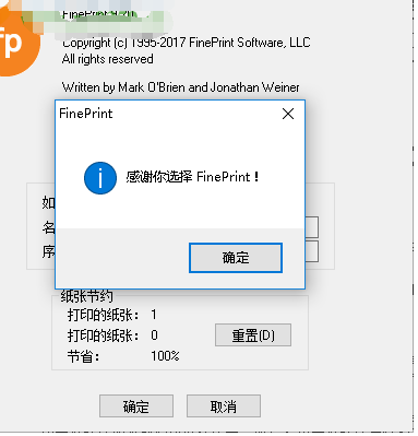 10、当弹出“感谢你选择FinePrint”的FinePrint窗口界面,即可完成激活。