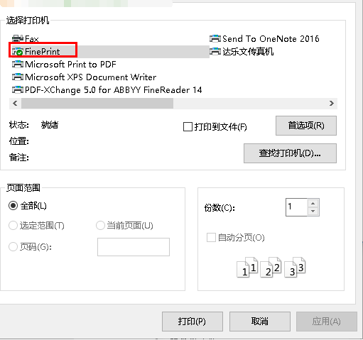 5、安装完毕后,FinePrint软件自动添加到打印机中。