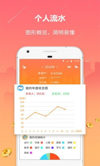 6、数据分析:直观的图形展示,折线图、饼图等,还能自定义查账时间周期,让你了解你的钱花在哪里。
