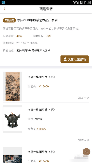 [功能强大便捷]:方便快速地查看拍卖预展信息,多维度搜索,设置成交价提醒,一键导航至拍场。