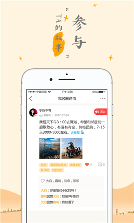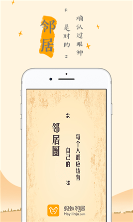 蚂蚁邻居APP“社交新方式,找到好邻居”,您可以找到自己的邻居,在邻居中找到身边的老师,身边的同行,身边的律师;感受传统文化、增进邻里感情;同时我们还为小区内的您提供了便利店和捷水洗车功能,让您在小区内更佳舒心便捷。