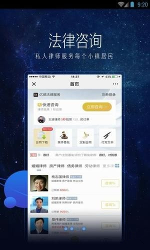 3、法律咨询好帮手,一键呼叫找律师;离婚纠纷、劳动仲裁、交通事故、遗产继承、债权债务、侵权赔偿、房产纠纷、知识产权,匹配专业律师;合同文本下载,海量高质合同文书模板,即搜即用。