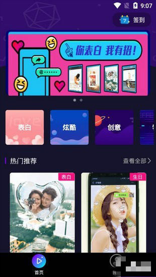 指尖是一款集图片和视频创意于一体的视频制作App,提供各式各样的素材模板,让用户一键生成,定制自己的专属视频作品。模板类型包括逗趣、搞笑、黑科技、深情表白、节日祝福等等,广泛被分享于微信朋友圈和抖音。
