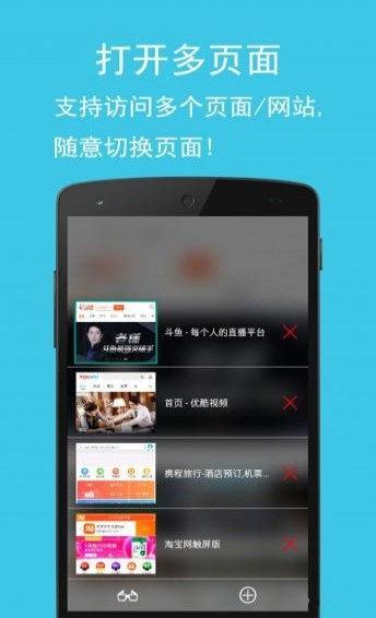 支持同时浏览多个网页, 可以在新标签页打开新的网页, 也可以在后台静默打开网页.