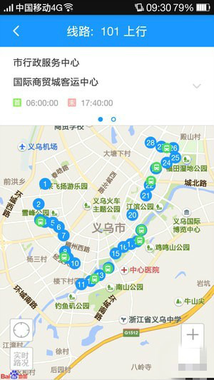 【位置查询】义乌出行通app可以查看并显示公交车辆实时位置。