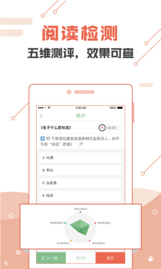 《悦读悦乐》APP围绕全民阅读为中心思想,将传统的面对面提问方式转为轻松愉悦的O2O答题模式,改变了难以全面掌握学生阅读情况和不利于对学生精准指导的现状,使教学在数字化的同时,更自主化、个性化。